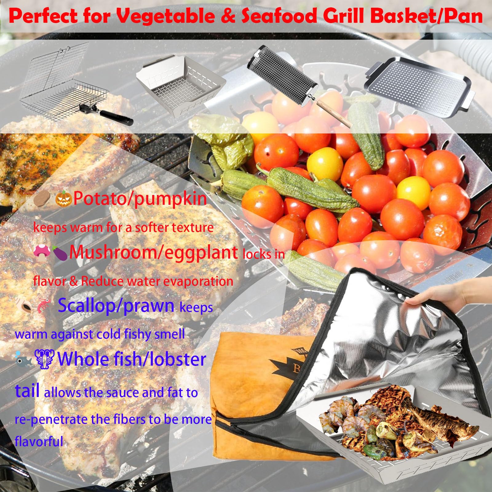 📏 Large Capacity for Any Cut of Meat: Measuring 15” W x 21” H x 7” D, this BBQ resting blanket handles large briskets, pork shoulders, whole chickens, or roasts. Perfect for home smoking sessions, outdoor parties, picnics, and camping trips, it keeps your smoked creations warm and ready to serve.