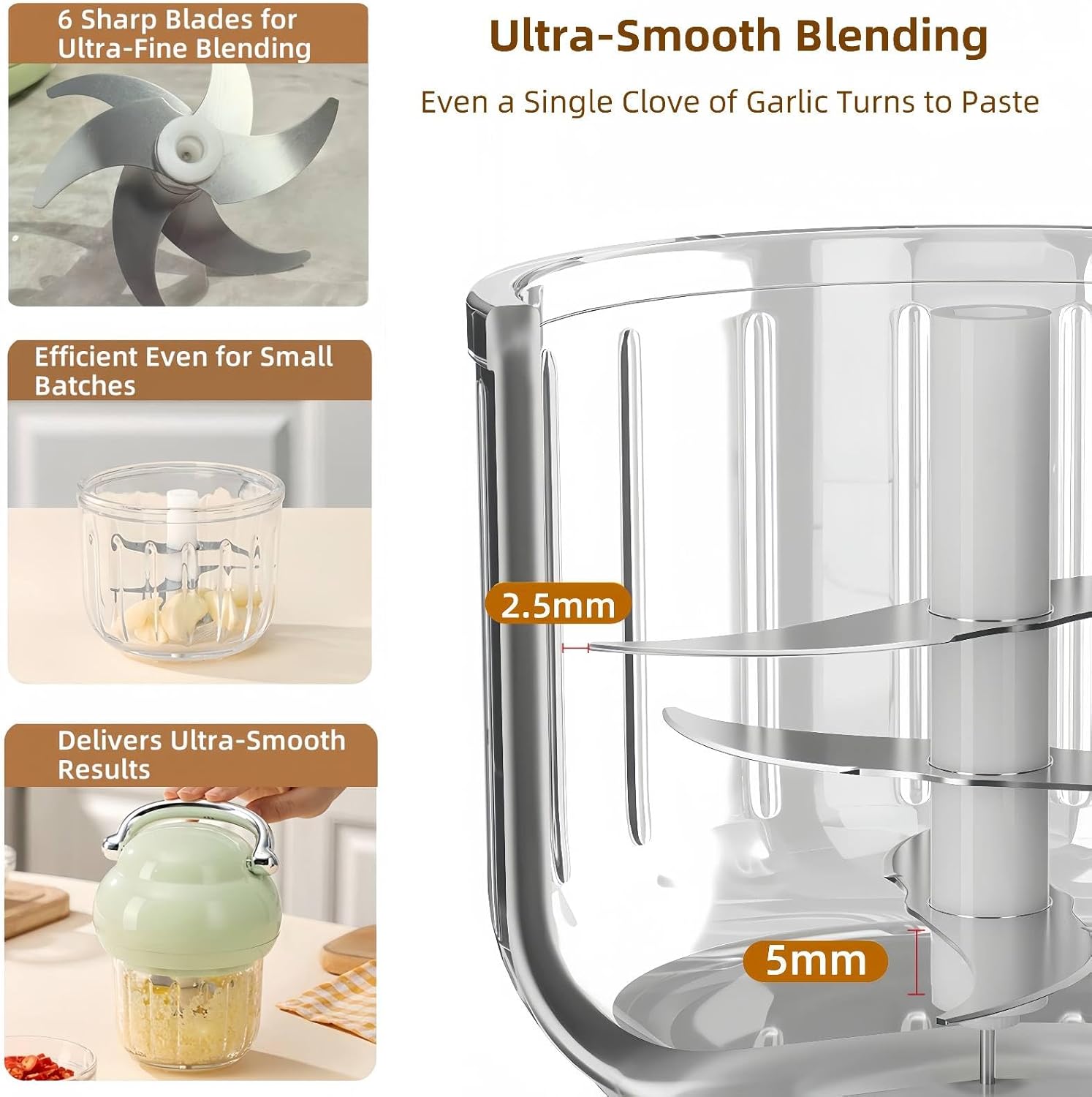 Grind meat, chop garlic/veggies, blend nuts, baby foodïŒmake purees. One tool replaces multiple gadgetsâsimplify cooking, boost efficiency!